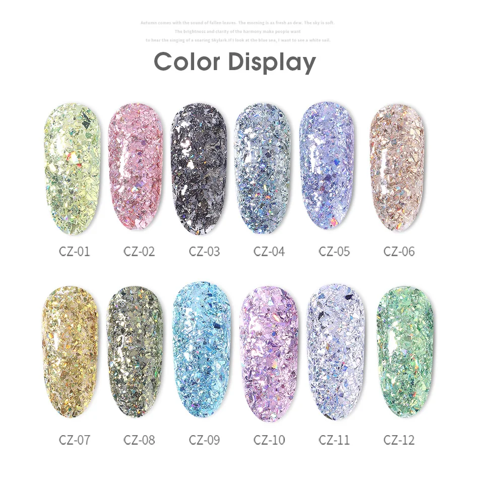 Related Product for ROHWXY Nail Art Decorations Manicure 12 Colors Shinning Colorful Glitter Flakes 3D DIY Nail Glitter