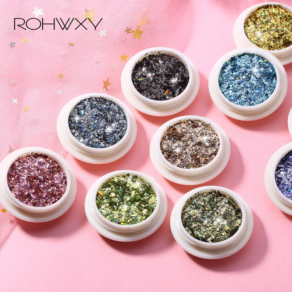 Best Price for ROHWXY Nail Art Decorations Manicure 12 Colors Shinning Colorful Glitter Flakes 3D DIY Nail Glitter