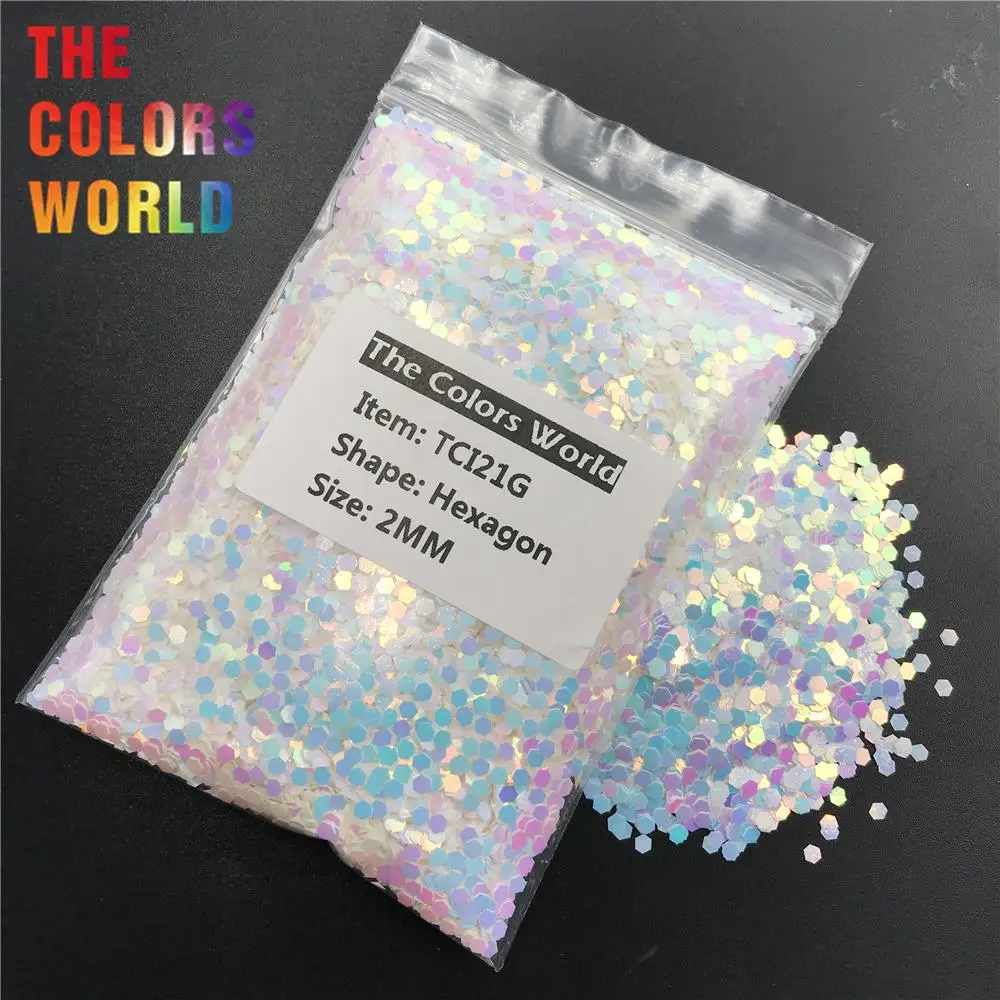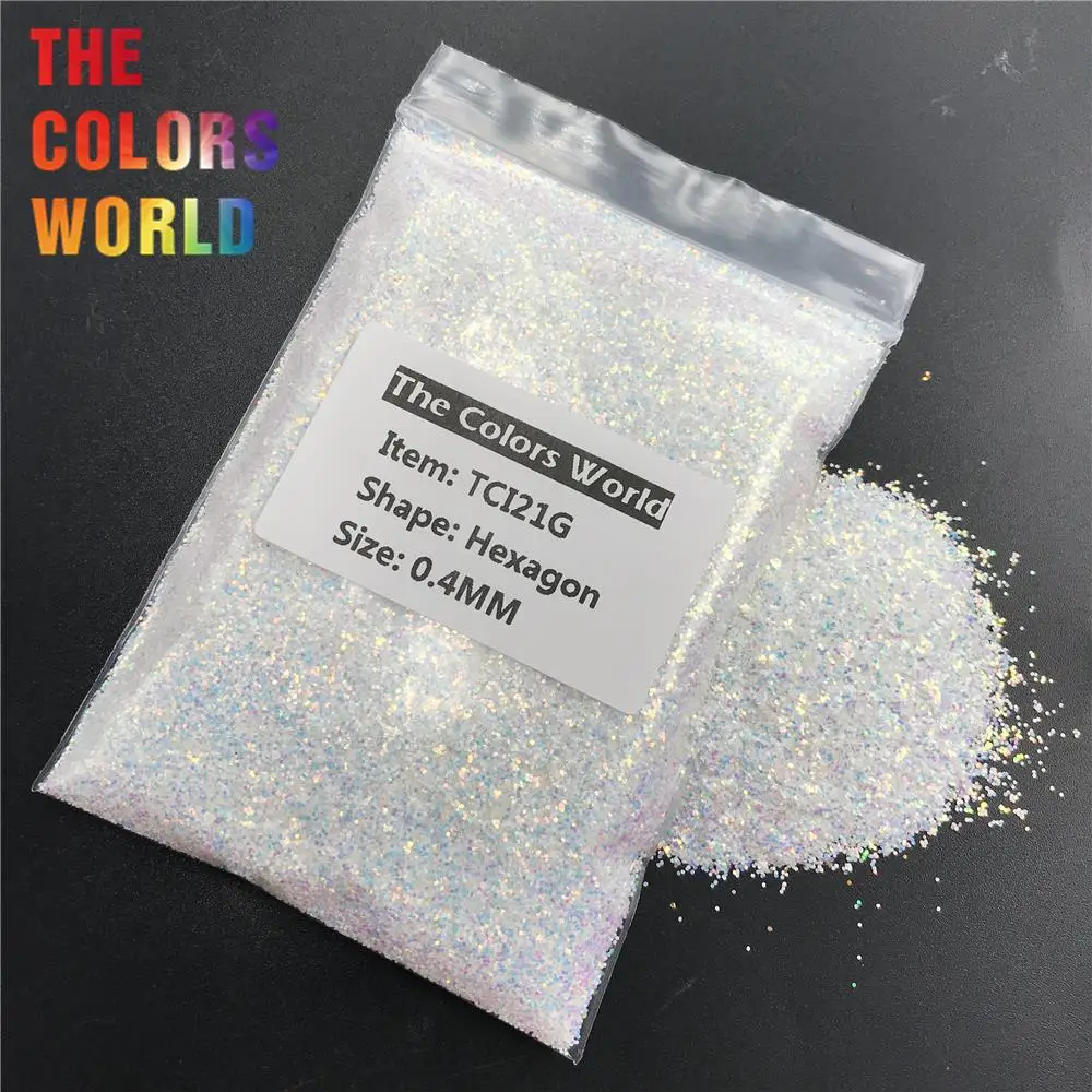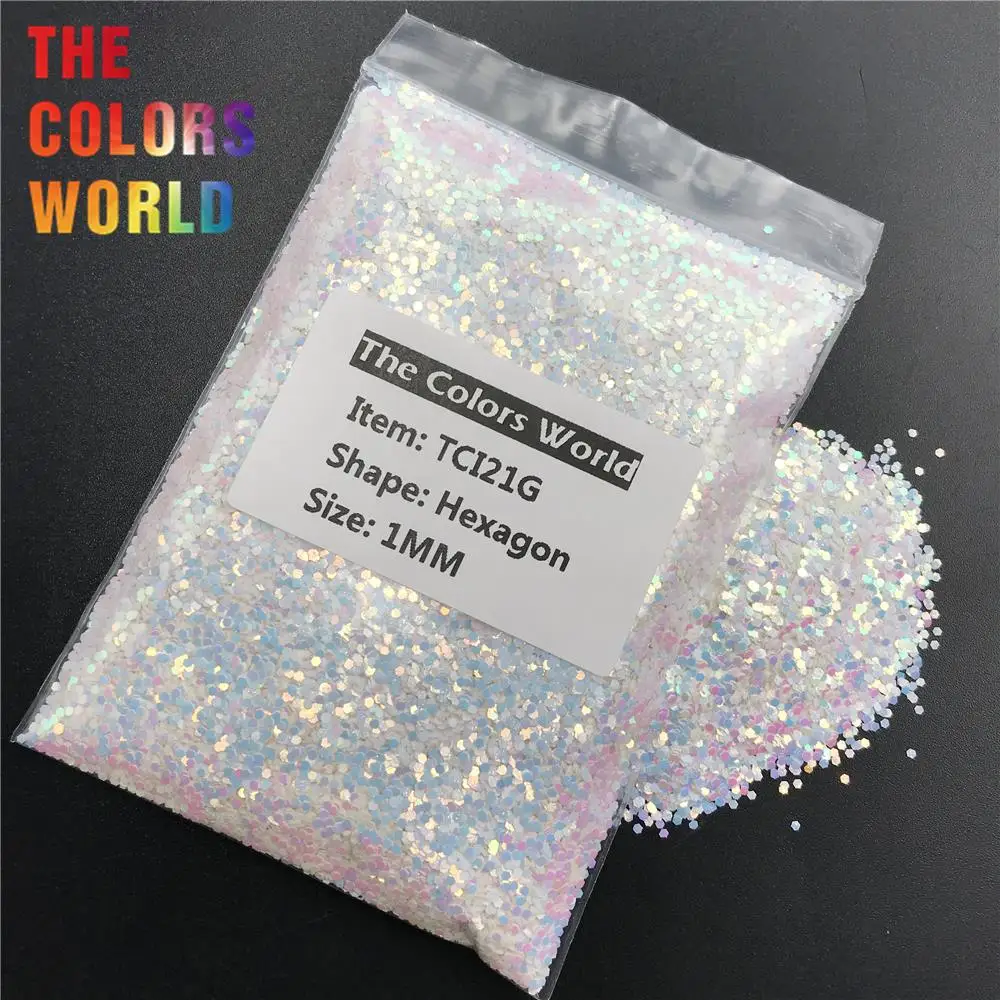 TCR321 White Iridescent Rainbow Hexagon Shape Nail Glitter Nail Art Decoration Body Glitter Eye Shadow Makeup Face Paint DIY