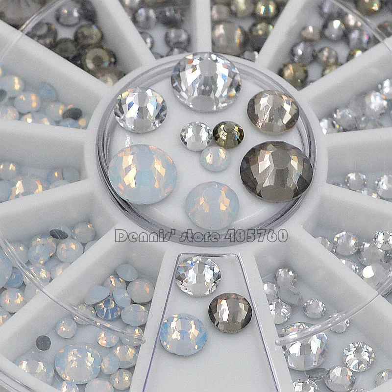 Best Price for 1 Wheel Mix Sizes Glitter Colorful Hotfix Flatback Round Facets Diamond Nail Art Rhinestones Decora