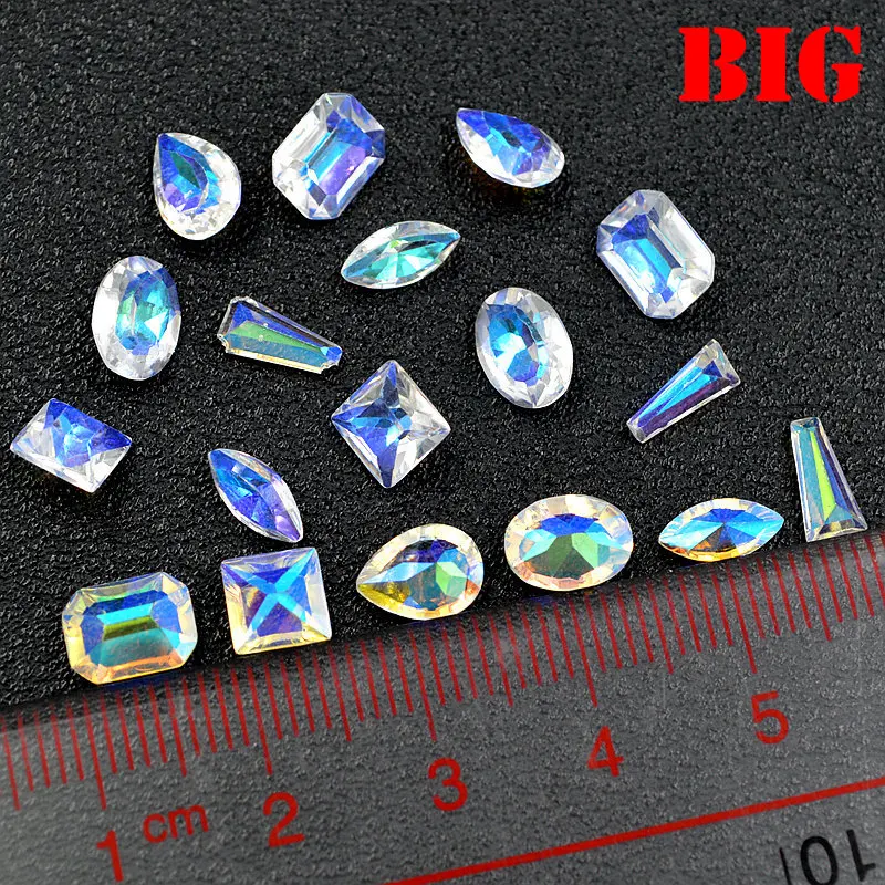 Related Product for 1 Pack Mix Shapes Glitter AB Clear Square Oval Drop Resin Multislice Diamond Gems Nail Art Rhinesto