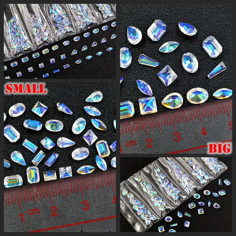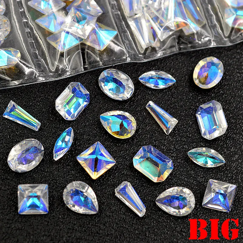 Limited Chance of 1 Pack Mix Shapes Glitter AB Clear Square Oval Drop Resin Multislice Diamond Gems Nail Art Rhinesto